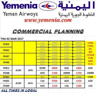 عدن اوبزيرفر ينشر مواعيد رحلات الخطوط الجوية اليمنية الجمعه الموافق 12 ابريل 2019م