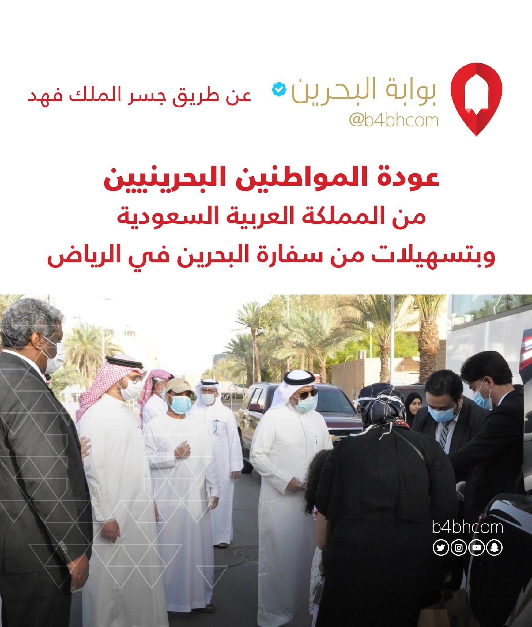 سفارة البحرين في الرياض. بإمكانك التواصل مع سفارة البحرين بالرياض من خلال. القنصلية العامة لمملكة البحرين في جدة تسهل عودة المواطنين البحرينيين المتواجدين في مكة المكرمة والمدينة المنورة وجدة والطائف إلى المملكة. سفارة البحرين الرياض الحي الدبلوماسي بالقرب من مكاتب شركة الطيران السعودي صندوق بريد 94371 الرياض 11693. الرياض المملكة العربية السعودية.