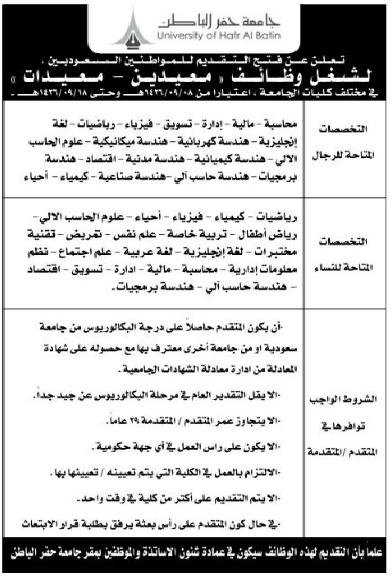 وظائف وفرص عمل شاغرة فى المملكة العربية السعودية وظائف جريدة اليوم السعودية 25 6 2015 وظائف السعودية اليوم وظائف السعودية وظائف جريدة اليوم وظائف 8 رمضان 1436 وظائف شاغرة