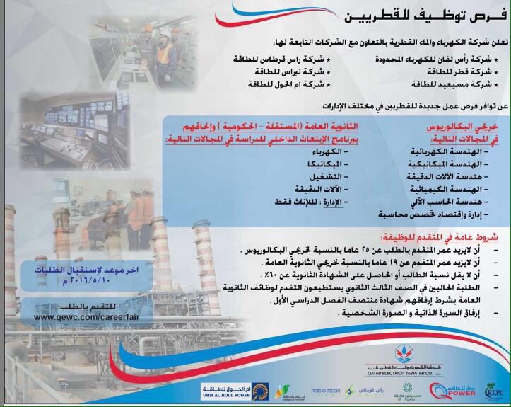 شركة الكهرباء توظيف خريجي الثانويه