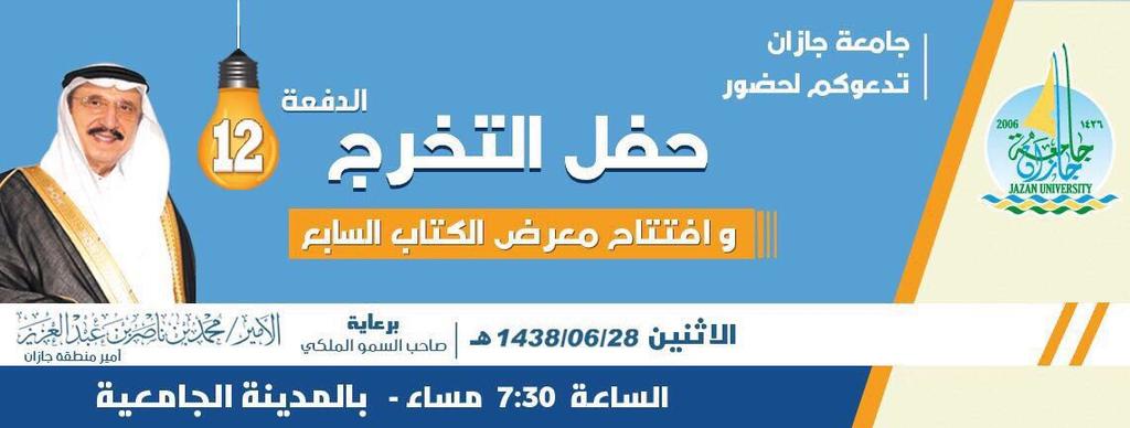 طلاب وطالبات جامعة جازان On Twitter متبقي 5 أيام لحفل التخرج لطلاب جامعة جازان الدفعة 12 و أيضا افتتاح معرض الكتاب السابع معرض الكتاب جامعة جازان