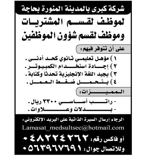 وظائف السعودية وظائف صحيفة المدينة 14 شوال 1433 1 9 2012 وظائف شركة كبرى راتب اساسى 3300 ريال