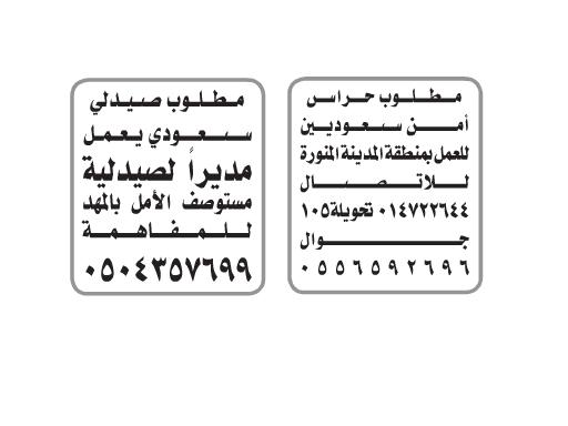 وظائف السعودية وظائف صحيفة المدينة المنورة 24 رجب 1433 14 6 2012 وظائف حراس امن للعمل بالمدينة المنورة وظائف مستوصف الامل