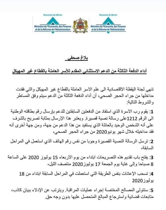 الناس اللي غادي يستفدو من الدفعة الثالثة ديال الدعم شروط و طريقة الاستفادة صرف الدفعة ابتداء من 18 يوليوز 2020