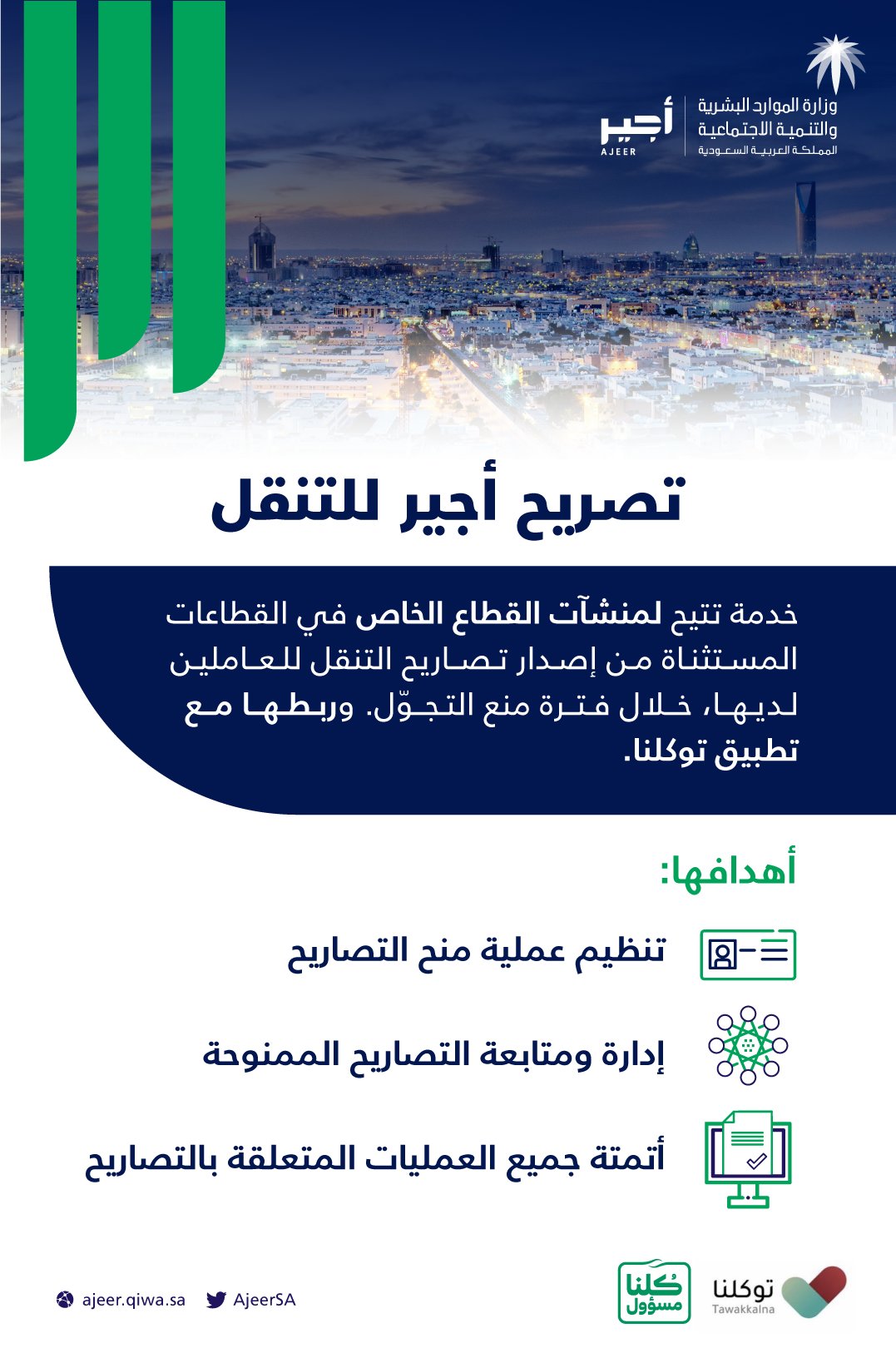 أجير On Twitter بالتعاون مع الجهات المعنية منصة أجير هي المنصة المصرح لها باستخراج تصاريح التنقل لمنشآت القطاع الخاص المستثناة من منع التجول أجير التنقل توكلنا Tawakkalnaapp Sdaia Sa Https T Co Taly7bbofa