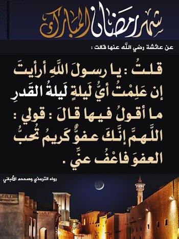 عن عائشة رضي الله عنها قالت قلت يا رسول الله أرأيت إن علمت أي ليلة ليلةالقدرما أقول فيها قال قولي اللهم إنك عفو تحب العفو فاعف عني Ramadan Islam Blog