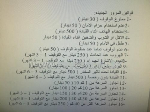 قيمة مخالفات السير في الاردن كل مخالفة شركة المركز القومي للقانون والمحاماة المحامي صالح ابو جيش فيسبوك