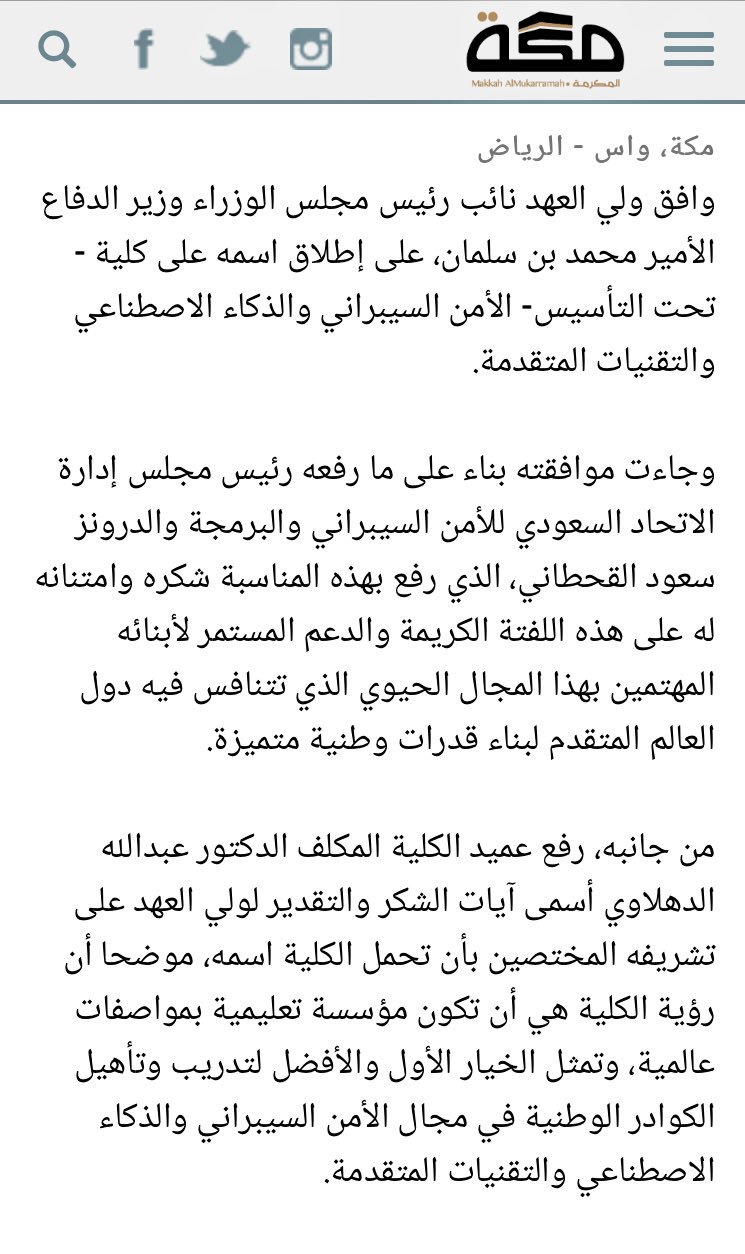بكالوريوس الأمن السيبراني. أنتهت كلية الأمير محمد بن سلمان للأمن السيبراني والذكاء الإصطناعي والتقنيات المتقدمة من إعداد برنامج البكالوريوس في الأمن السيبراني لإطلاقه قريب ا بالتعاون مع. وقع الاختيار على مدينة الرياض لتكون مقرا لكلية الأمن السيبراني والبرمجة والذكاء الصناعي إذ تمنح الكلية درجتي البكالوريوس والدبلوم في 8 تخصصات وفقا لما أكده عميدها الدكتور عبدالله الدهلاوي لـ مكة هاتفيا أمس. التسجيل والالتحاق بكلية الأمير محمد بن سلمان.