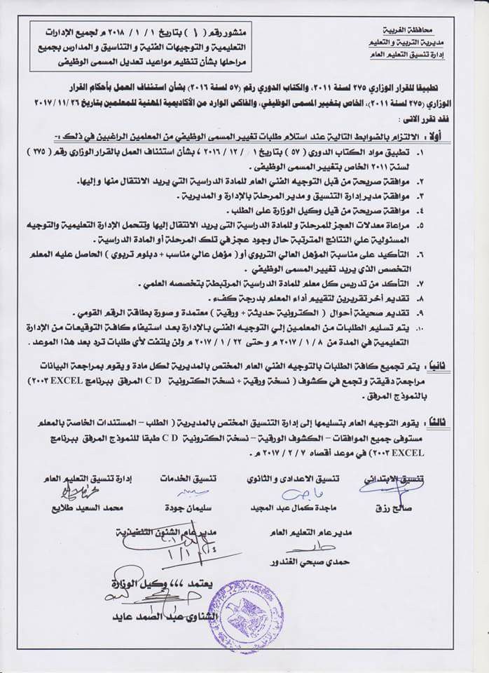 طلب تغيير مسمى وظيفى للمعلمين والمعلمات من وزارة التربية والتعليم مدونة وظيفتى