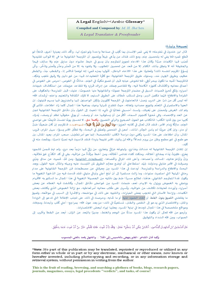 Legal Glossary By Muhammad Hussein Shaban
