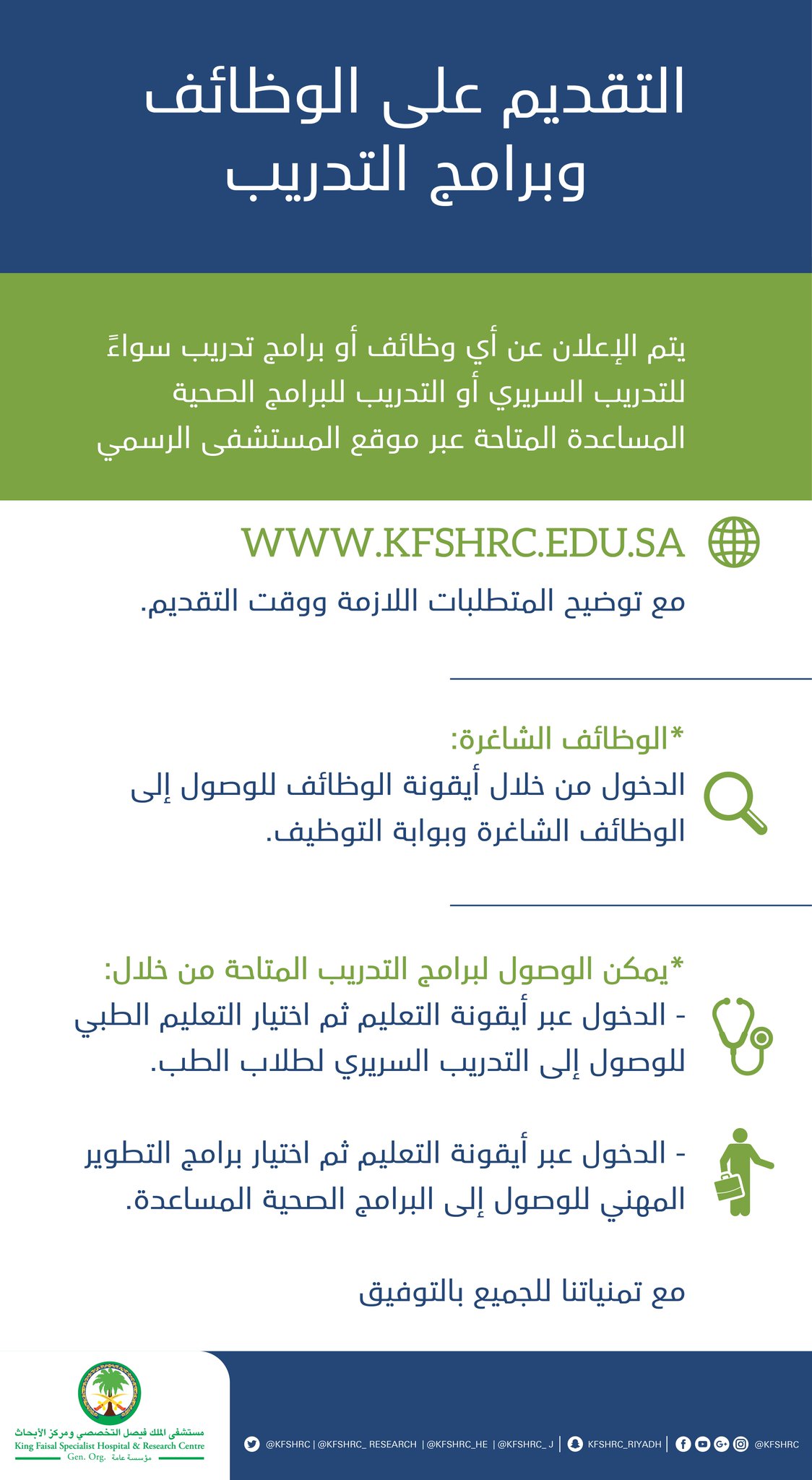 أن يكون المتقدم سعودي الجنسية. Are you a resident of al madinah and want to join kfsh rc. ي عد مستشفى الملك فيصل التخصصي ومركز الأبحاث أحد أفضل مؤسسات الرعاية الصحية في منطقة الشرق الأوسط بأسرها. أعلن مستشفى الملك فيصل التخصصي ومركز الأبحاث عن توفر وظائف صحية وإدارية لحملة الثانوية العامة فما فوق عبر موقعه الإلكتروني بوابة التوظيف للعمل بالمستشفى بمدينة الرياض والمدينة المنورة ومحافظة جدة وذلك وفقا.