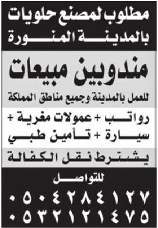 75 وظيفة شاغرة للجنسين لدى فروع حلويات سعد الدين صحيفة المواطن الإلكترونية