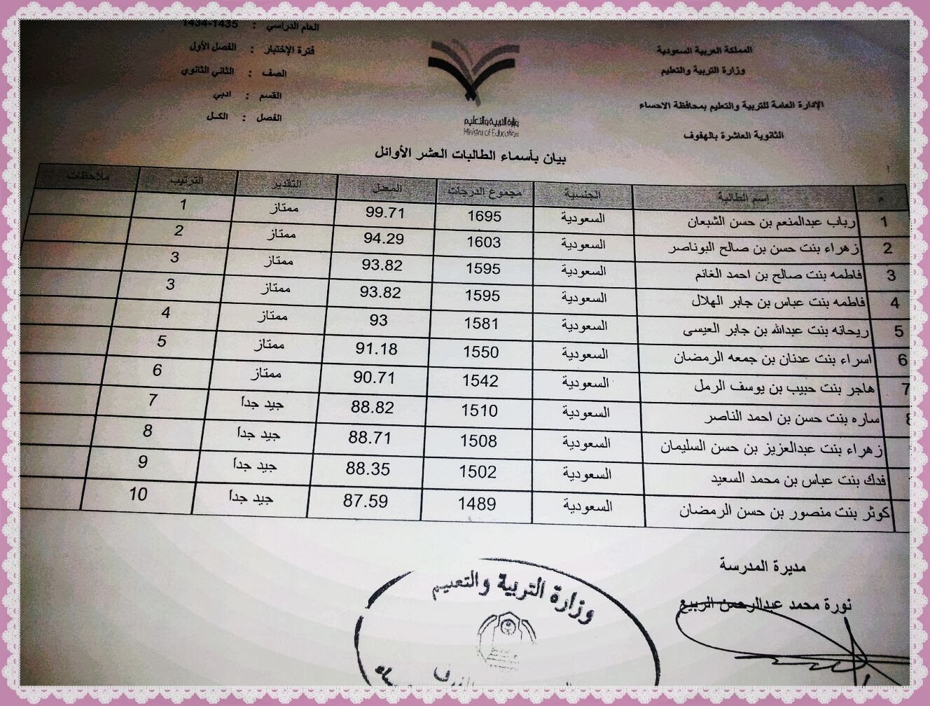 تكريم الطالبات المتفوقات في المتوسطة الاولئ و الرابعة ألف مبروك منتدى التعليم توزيع وتحضير المواد الدراسية