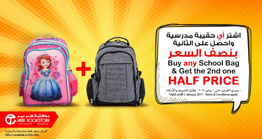 مكتبة جرير A Twitteren عرض توفير رائع اقتن أي حقيبة مدرسية واحصل على الثانية بنصف السعر تطبق الشروط والأحكام اضعط هنا Https T Co Jqmgecmx4c شنط مدارس جرير Https T Co Ute8fimfzt
