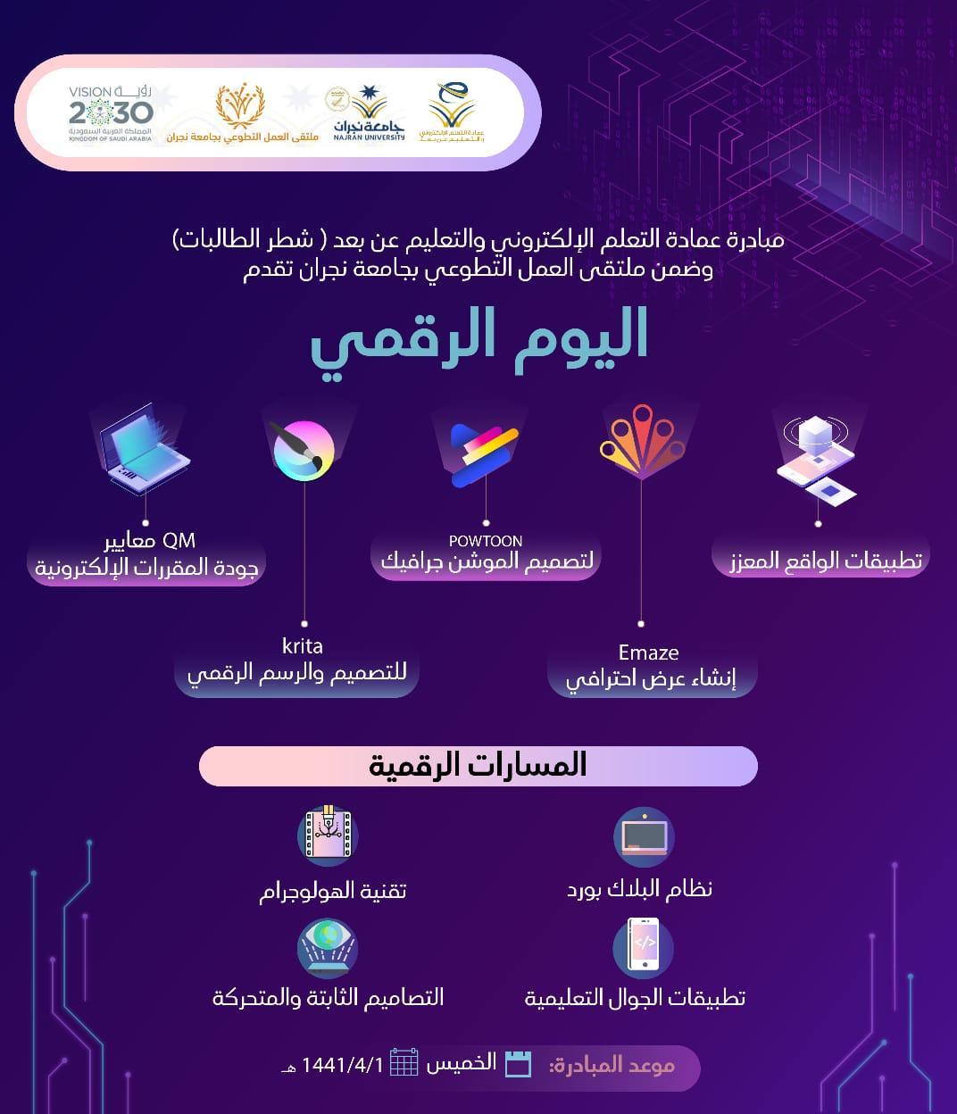 العمادة تشارك في ملتقى العمل التطوعي بالجامعة بمبادرة اليوم الرقمي