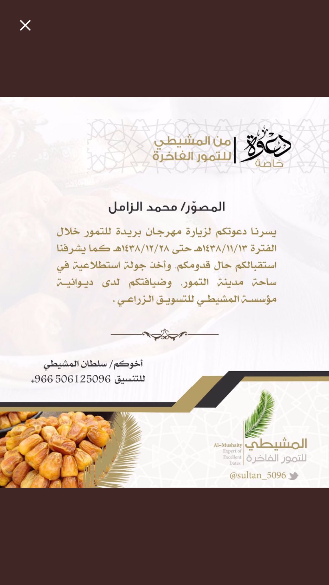 محمد الزامل On Twitter تلقيت دعوة لزيارة مهرجان بريده للتمور شكرا للصديق الغالي سلطان المشيطي على الدعوة