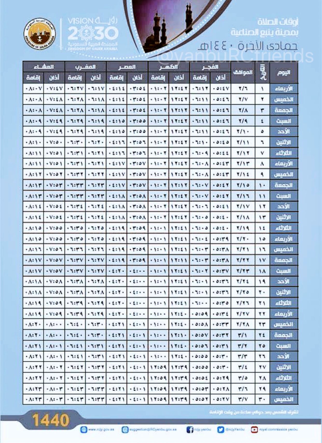 أصدقاء ينبع الصناعية No Twitter أوقات الصلاة في ينبع لشهر جماد الثاني ١٤٤٠هـ