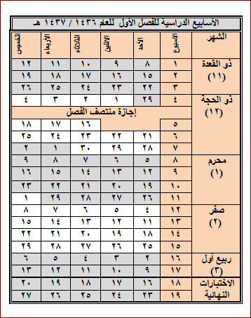 التقويم الدراسي لعام 1436 و 1437 هجري والاجازات الرسمية موسوعة كيوبيديا العالمية