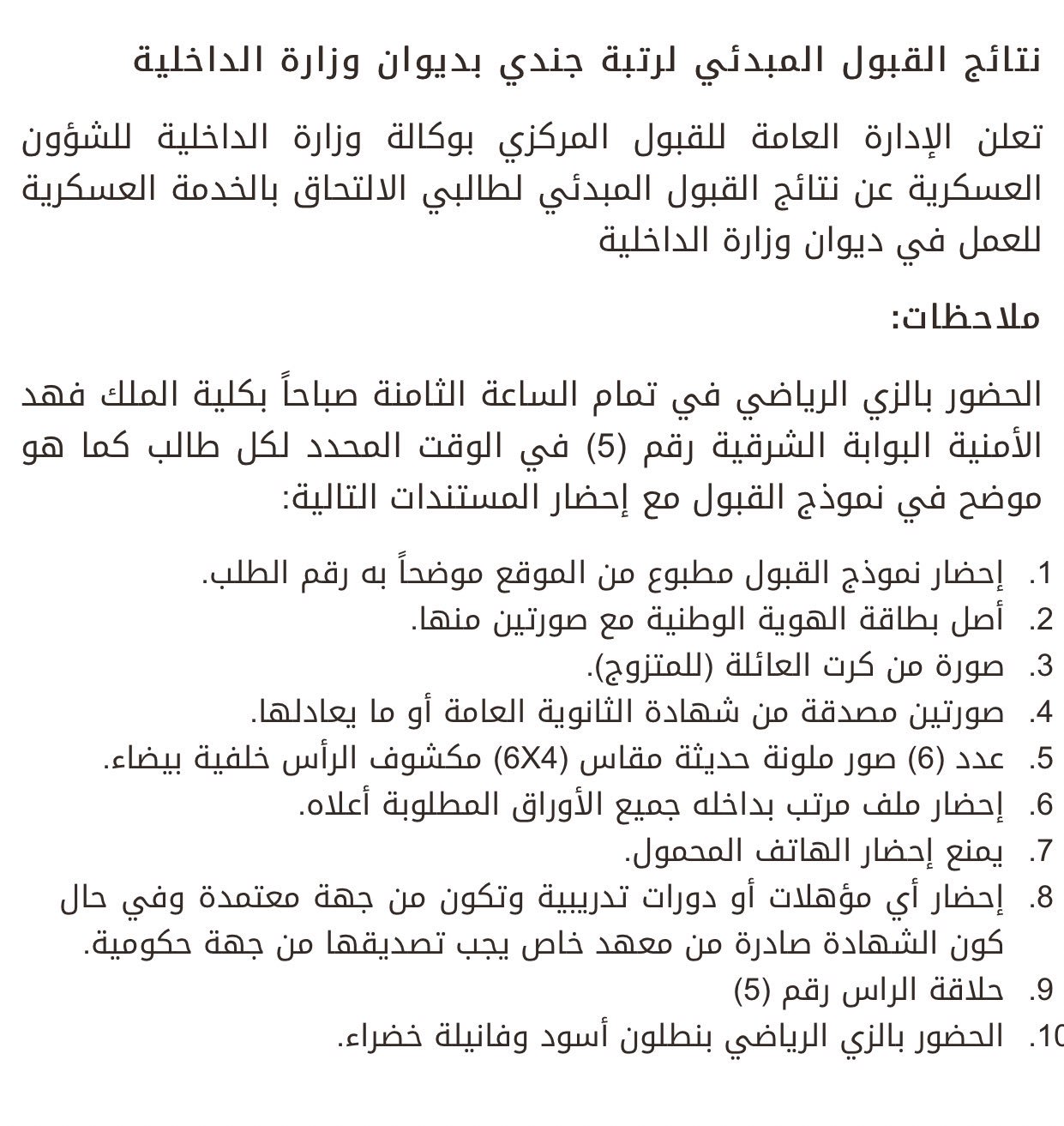 وظايف عسكريه على تويتر ديوان وزارة الداخلية نتائج القبول المبدئي لرتبة جندي بديوان وزارة الداخلية تعلن الإدارة العامة للقبول المركزي بوكالة وزارة الداخلية للشؤون العسكرية عن نتائج القبول المبدئي لطالبي الالتحاق بالخدمة العسكرية