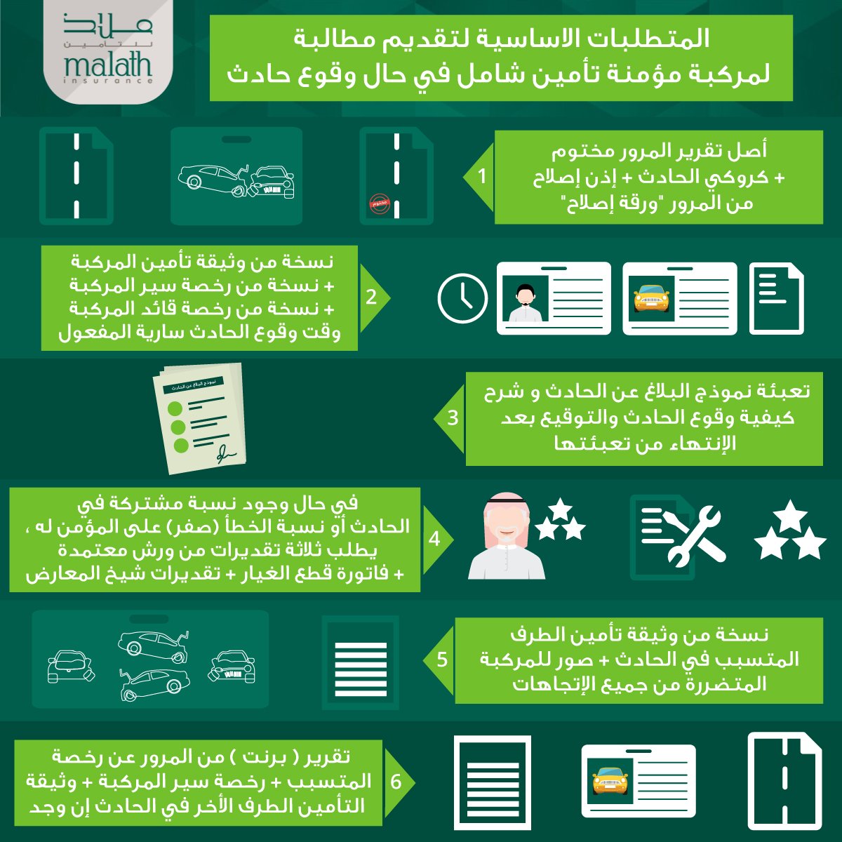 ماهي الخطوات التي تقوم بها في حالة حدوث حادث لسيارتك