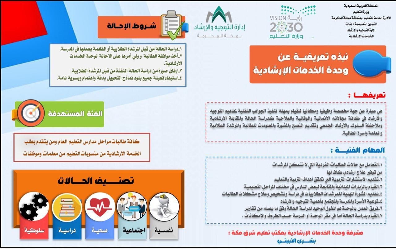 إدارة تعليم مكة On Twitter وحدة الخدمات الإرشادية بإدارة التوجيه والإرشاد تطلق انفوجرافيك تعريفي بأبرز خدماتها الإرشادية