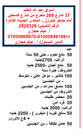 وظيفة كاشير لشركة أسواق عبدالله العثيم بالرياض وظائف السعودية