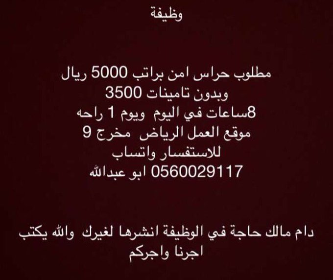 وظائف حراس مشرف حارس امن الرياض جدة مكة الدمام Wadaifksa Twitter