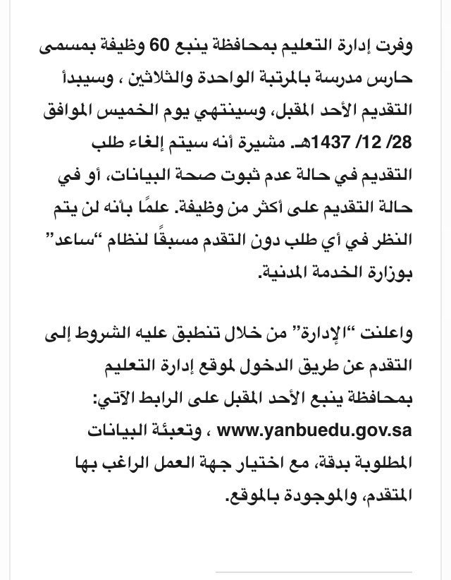 وظائف حراس مدارس 1437. وظائف حراسة أمن وظائف الحراسة والأمن في السعودية. وظائف شاغرة لحراس المدارس بتعليم حائل. 24 ذو الحجة 1437 هـ ويستمر لخمسة أيام مع أهمية تحري الدقة في تعبئة البيانات حيث سيتم استبعاد الطلبات الغير مستوفية الشروط المعلنة. طريقة التقديم من خلال الرابط التالي اضغط هنا.